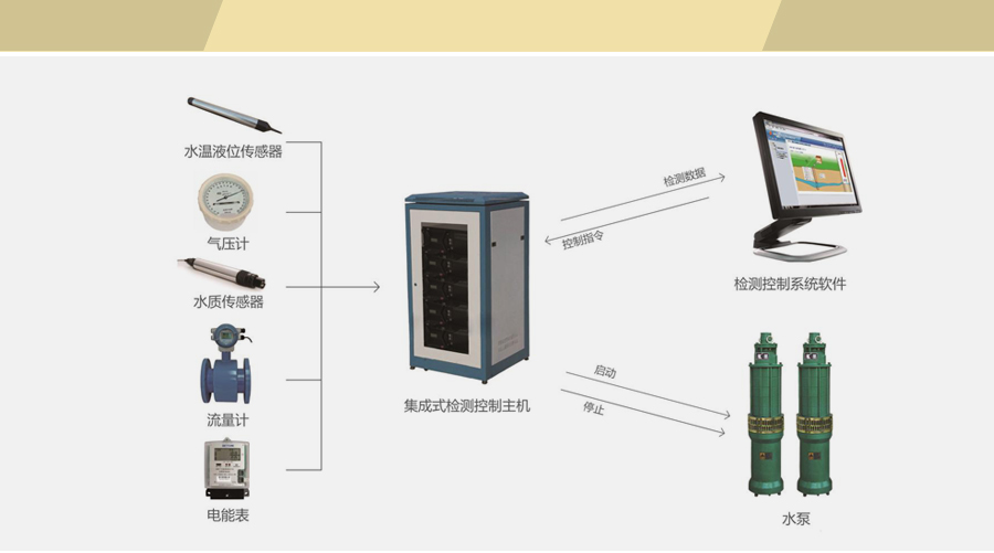 按照一定的时间间隔,将监测设备采集到的监测井水位、水温、流量以及耗电量等数据进行存储、显示,并通过对数据的汇集、加工和整理生成各种监测数据列表、报表和曲线,对出现的超量开采、未按开发利用方案开采的行为进行预警,根据设定的违规开采关停条件对开采井进行远程关停。