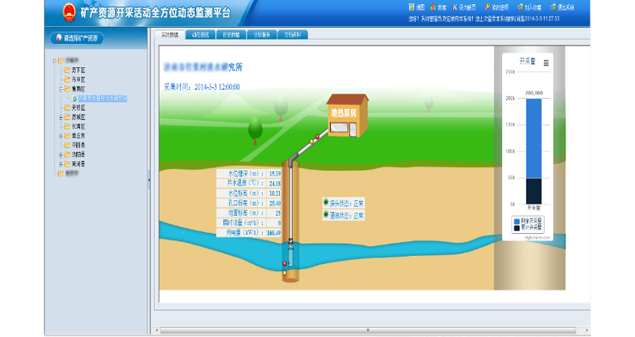 露天矿山开发利用三维可视化监管系统 绿色矿山评价与环境修复长效评估系统 矿山资源储量动态监管系统 地热资源远程自动化监控系统 地下矿山开采活动自动化监管系统 |